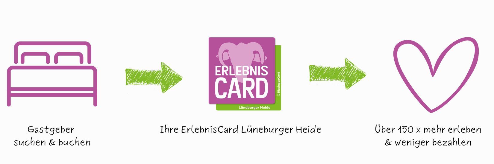 Die kostenfreie ErlebnisCard Lüneburger Heide ist ein exklusiver Service unserer Gastgeber, die an der Initiative „Mehr erleben. Weniger bezahlen.“ teilnehmen